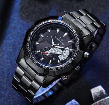 新品 クロノグラフ デユアル DS 腕時計 黒