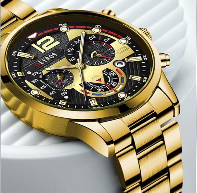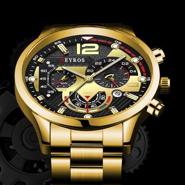 新品 DEYROS クロノグラフ 腕時計メンズ ゴールド