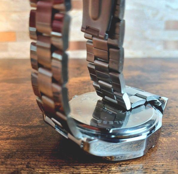 中でもこちらは現在腕時計の一つの主流となったビッグフェイスのデザインで、エレガントなカラー使いと男らしい無骨なデザインが合わさった存在感抜群のデザインです。 他にはない際立ったオシャレなデザイン!