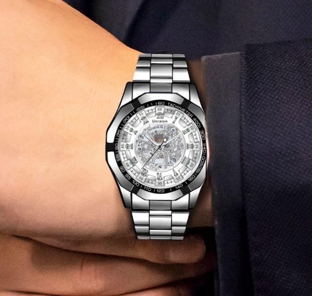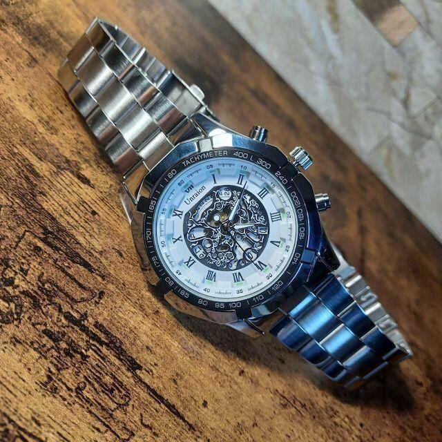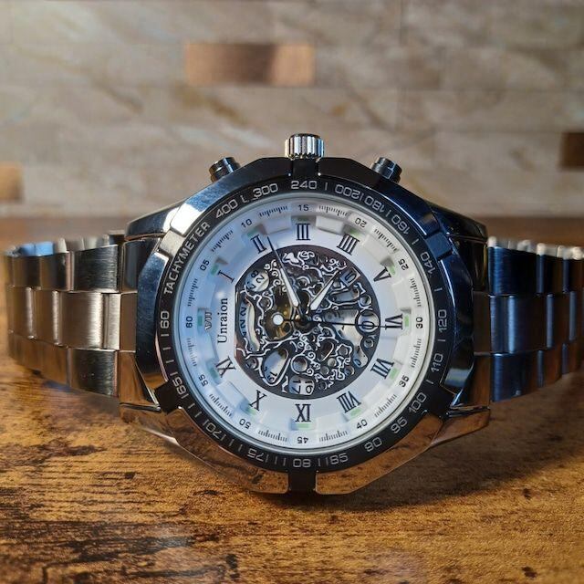 新品 彫スケルトンUnraion 腕時計 白