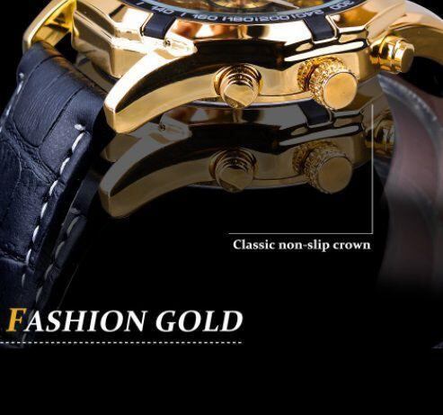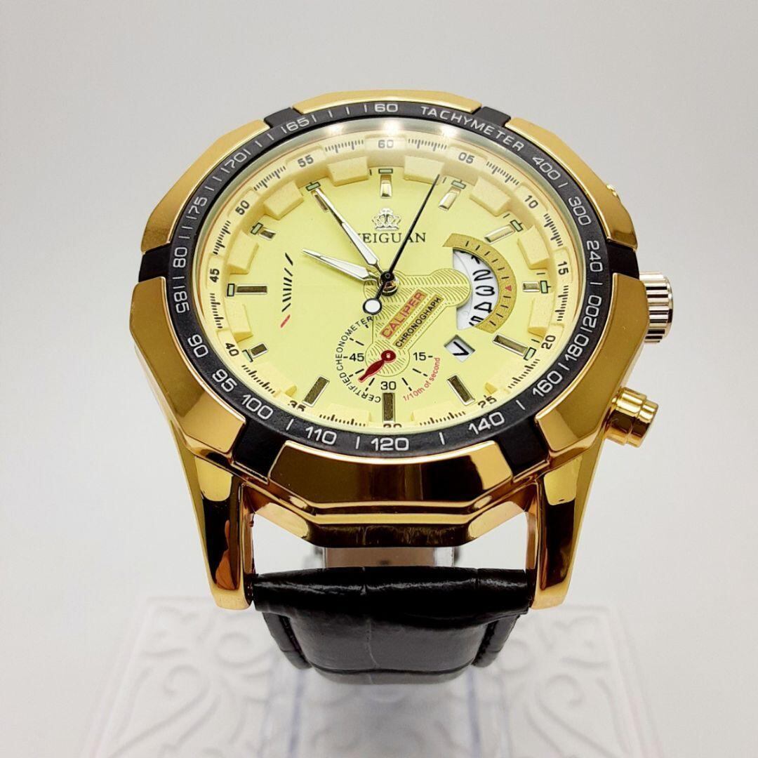 WEIGUAN 腕時計 ラグジュアリーレザー ゴールド