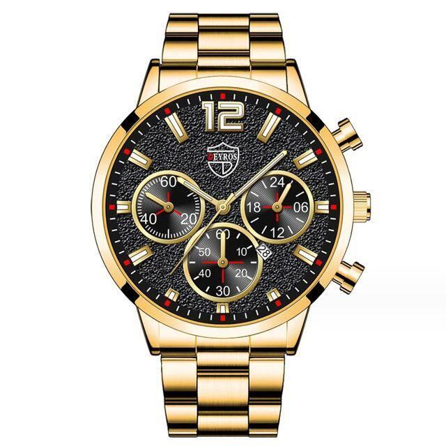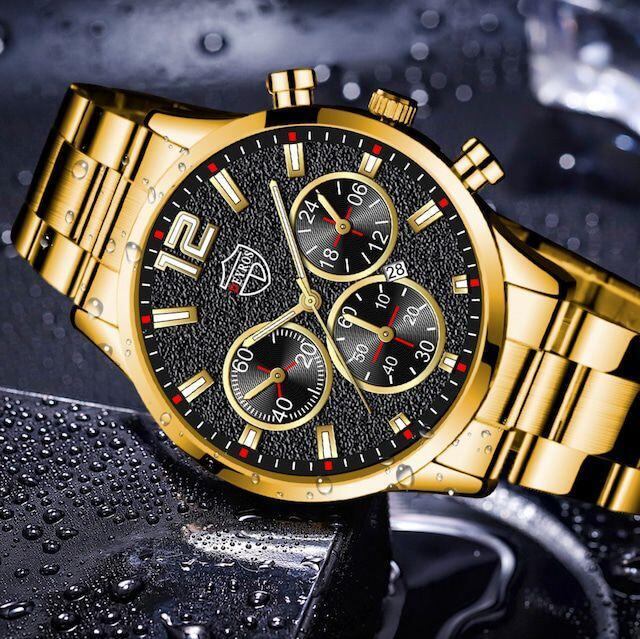 新品 クロノグラフ DEYROS 腕時計 ゴールド/黒