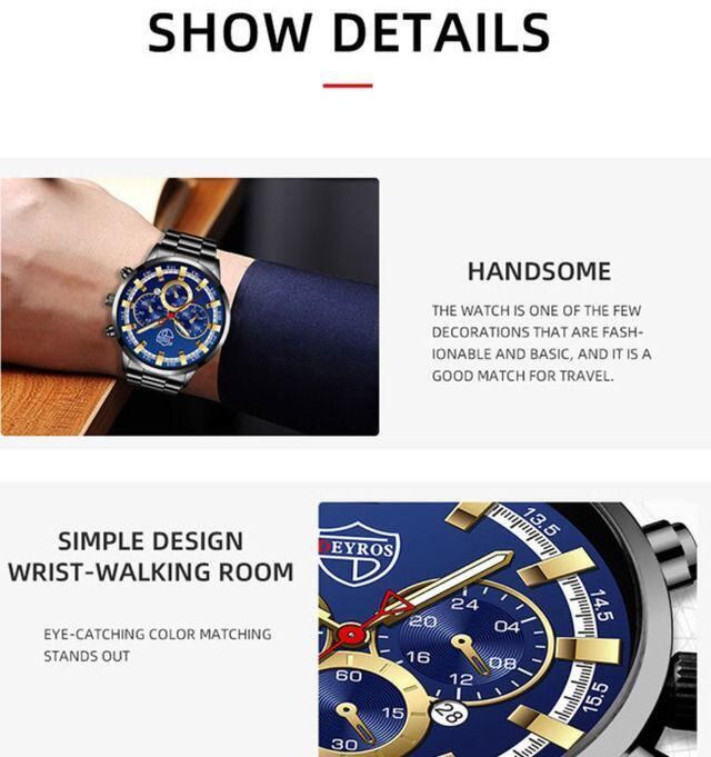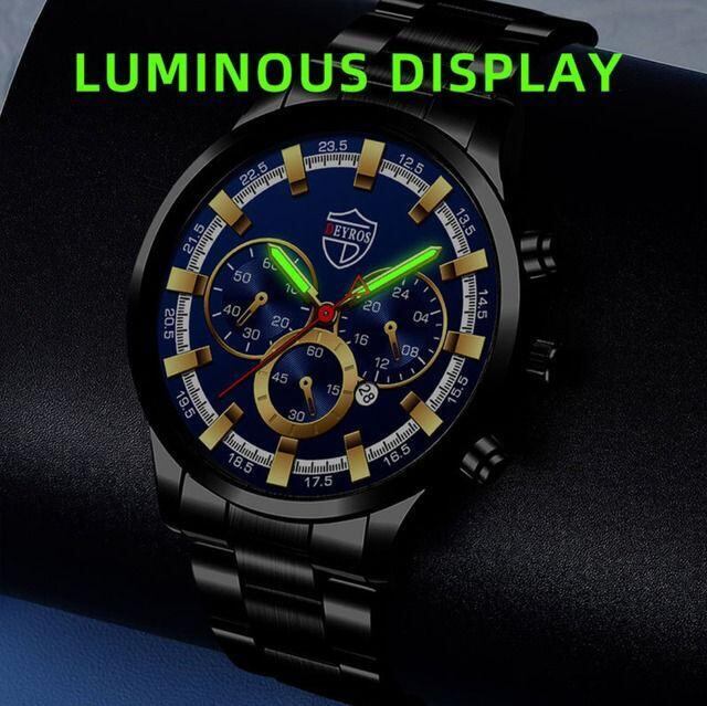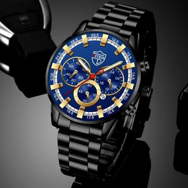 新品 DEYROS 腕時計メンズ 黒/青/金