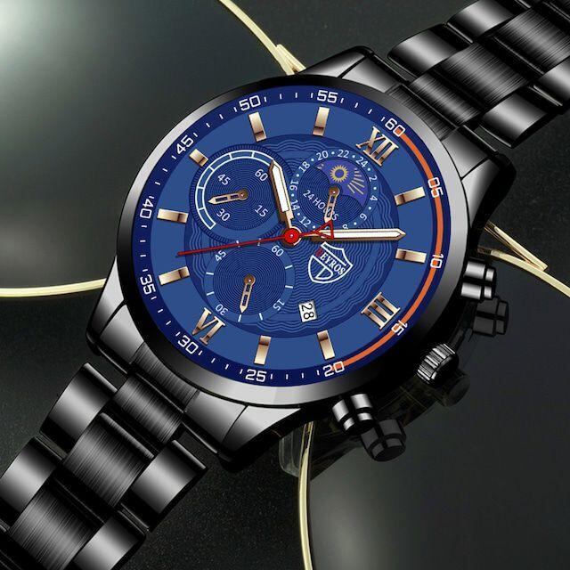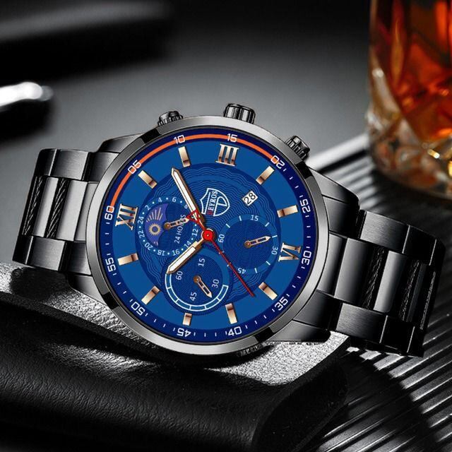 新品 DEYROS クロノグラフ ビジネス腕時計 黒青