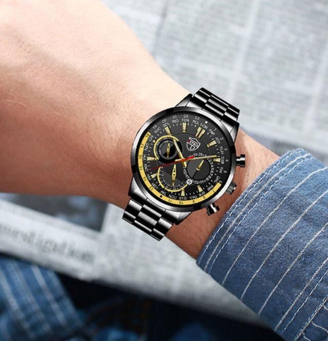 新品 DEYROS クロノグラフ ビジネス 腕時計 黒/金