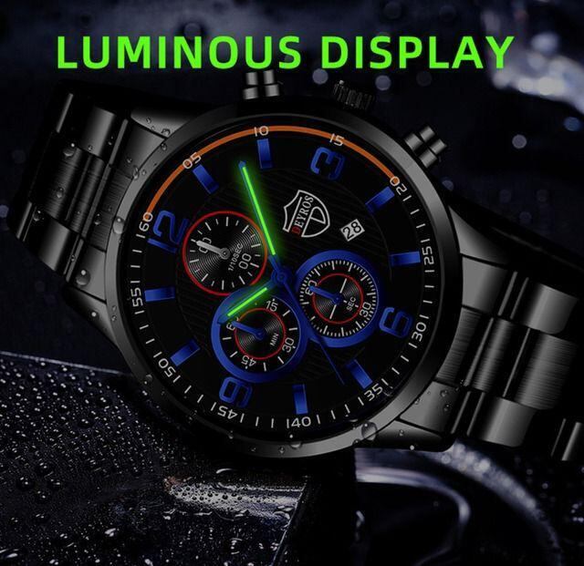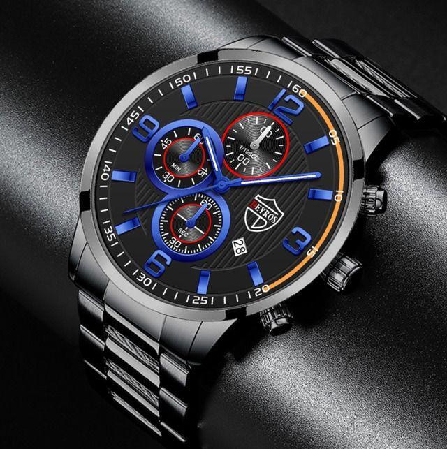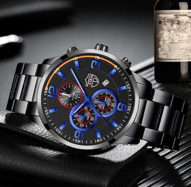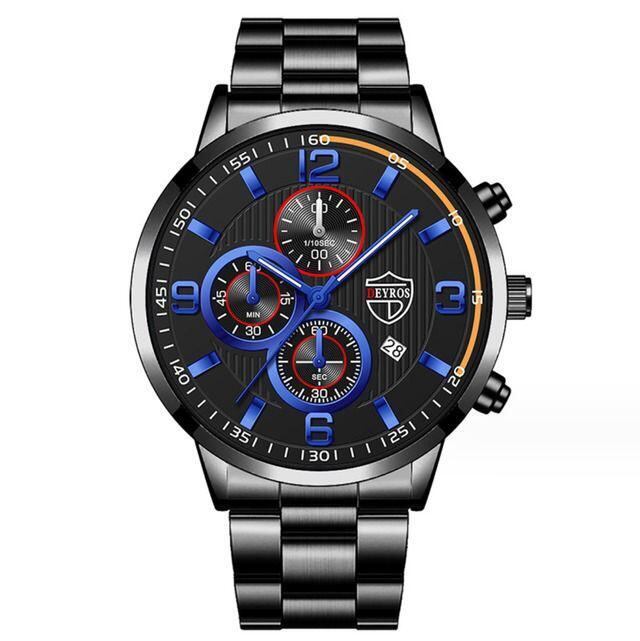 新品 DEYROS クロノグラフ ビジネス 腕時計 黒/青