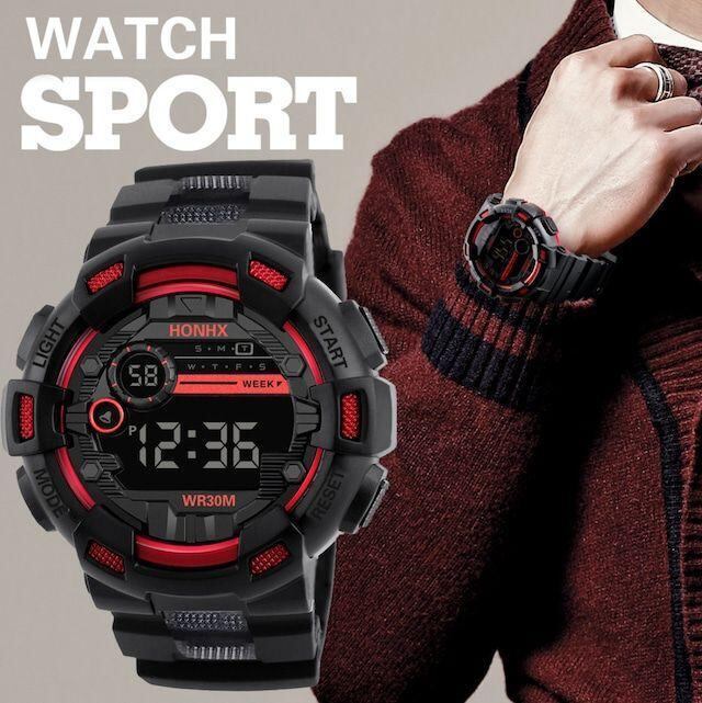新品 LED デジタル多機能 腕時計 黒/赤