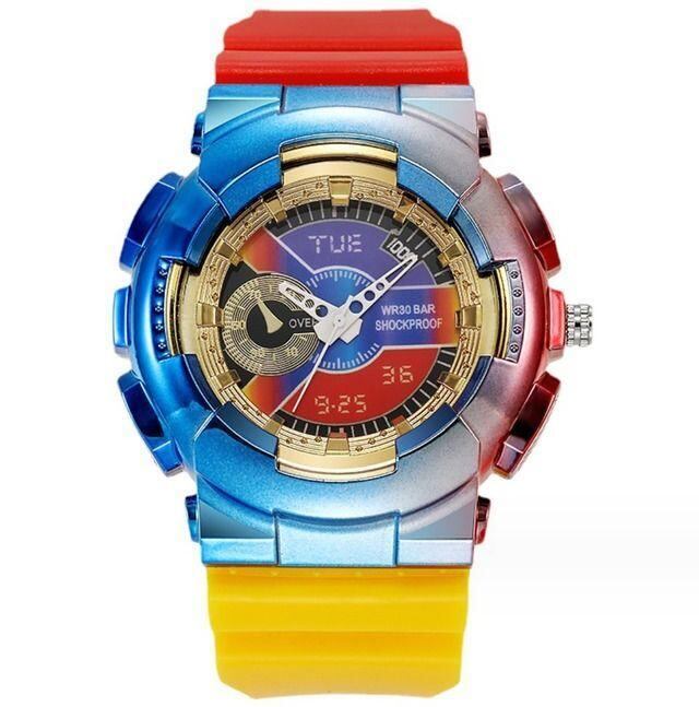 一見デジタルタイプに見えますがデジタルはダミーでアナログ式の違和感ありありな腕時計。