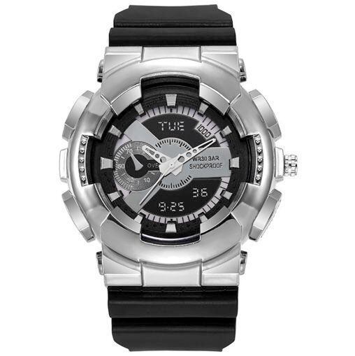 一見デジタルタイプに見えますがデジタルはダミーでアナログ式の違和感ありありな腕時計。
